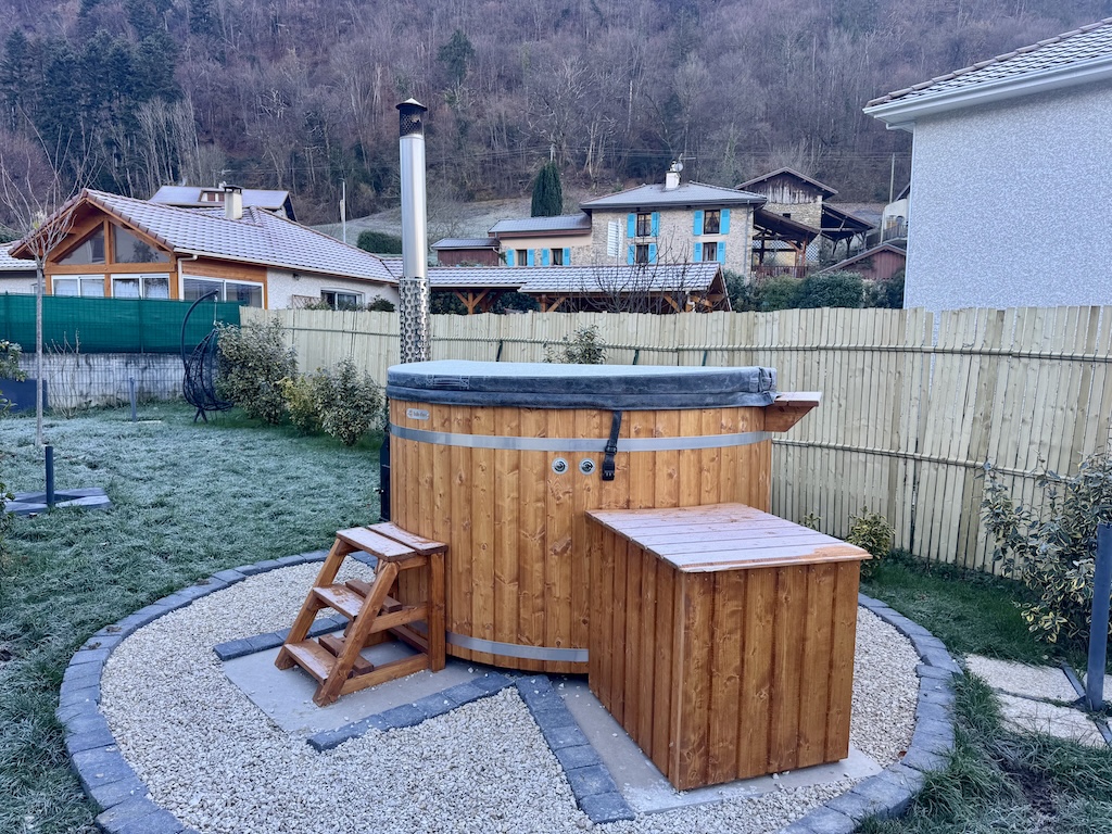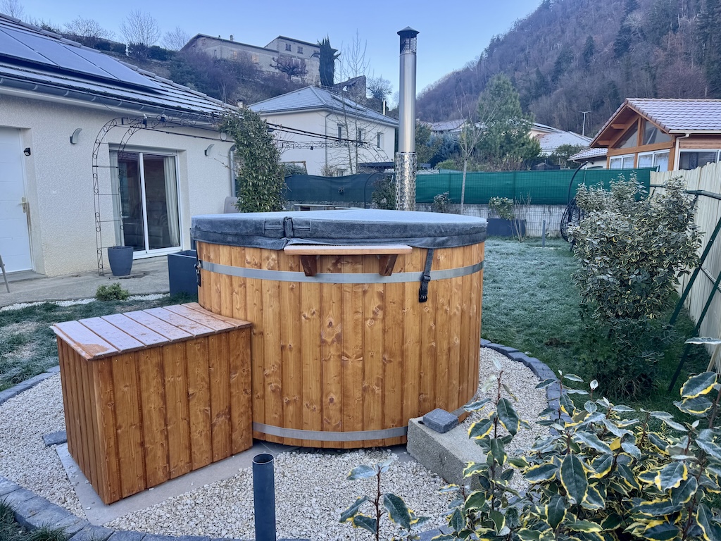 Bain nordique Isère - 38 - Diamètre 190cm (Bardage bois de 41mm avec cerclage - Intérieur gris)