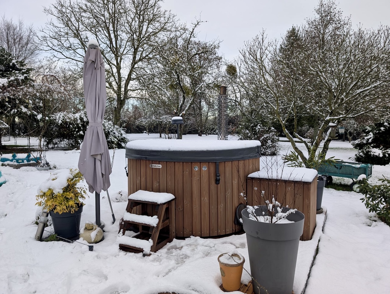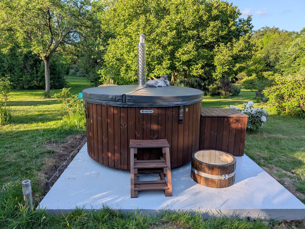 Option : 2 lumières led, groupe de filtration, bois thermo-traité et pédiluve