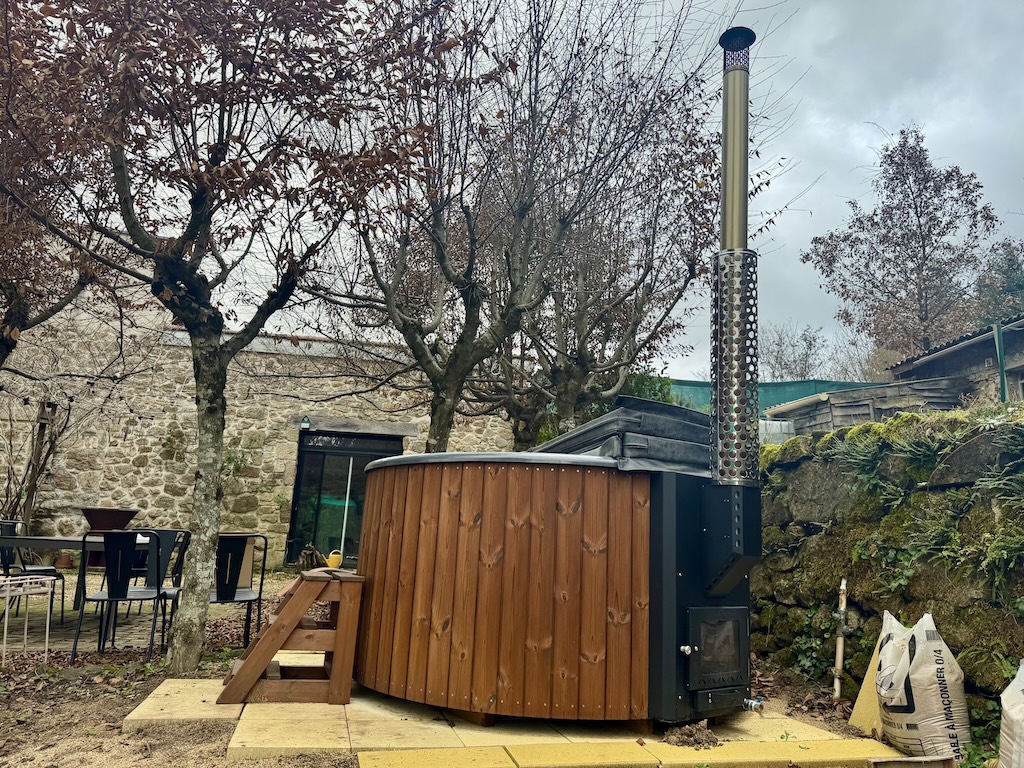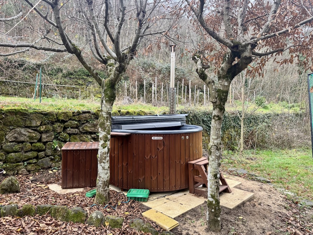 Bain nordique Ardèche - 07 - Diamètre 200cm avec poêle intégré (Bardage bois de 20mm sans cerclage - Intérieur gris)