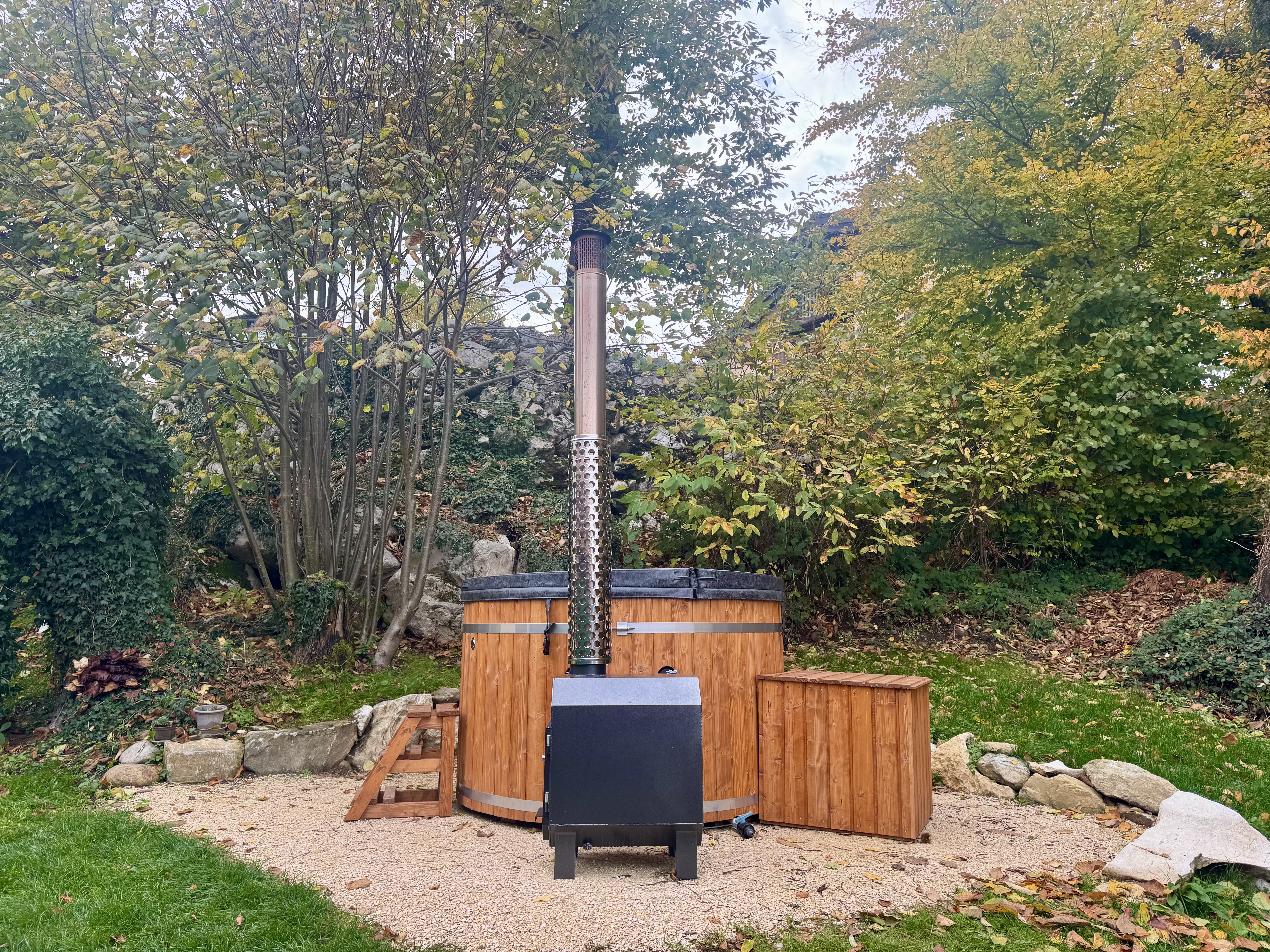 Bain nordique Isère - Vercors - 38 - Diamètre 190cm (Bardage bois de 41mm avec cerclage - Intérieur gris)