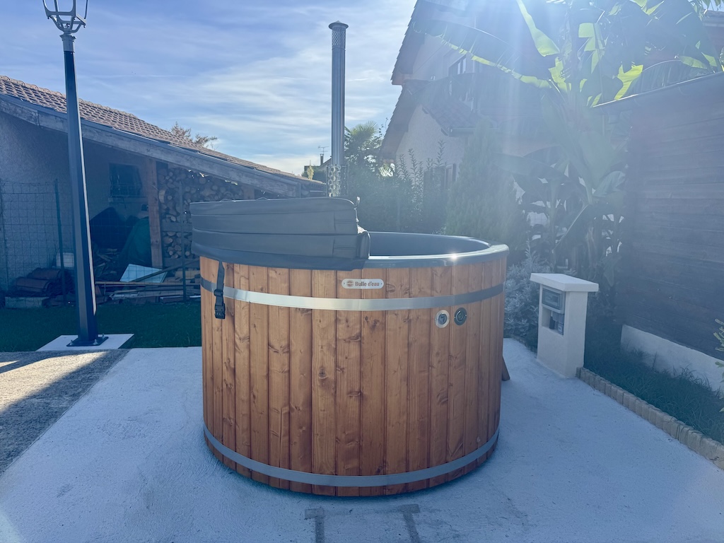 Bain nordique Isère - 38 - Diamètre 175cm (Bardage bois de 41mm avec cerclage - Intérieur gris)